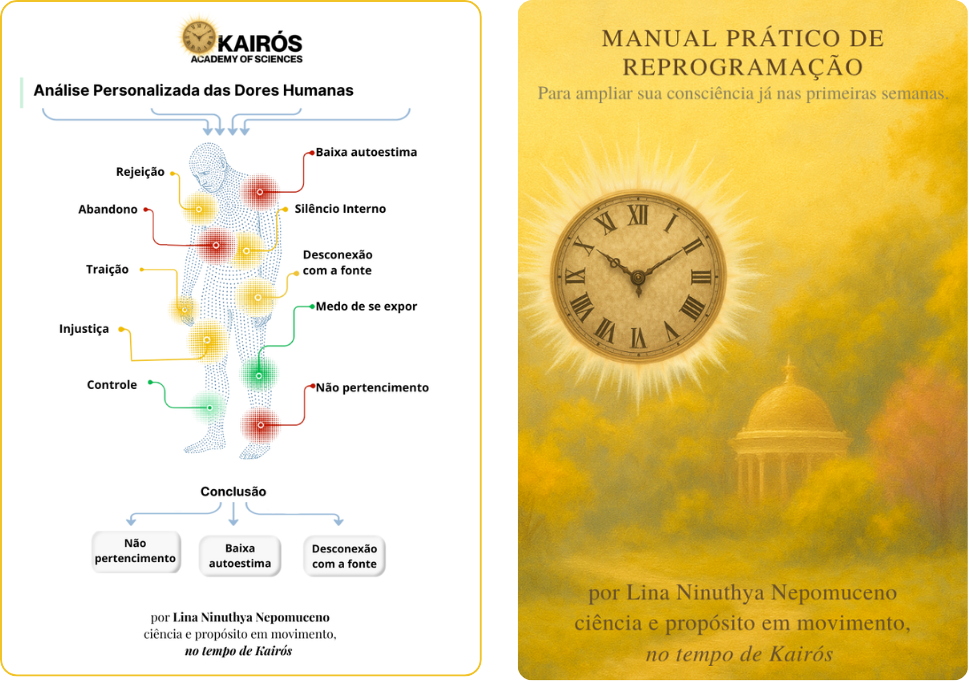 Com o Conceito de Kairós aplicado a análise personalizada das dores humana, a Lina Ninuthya Napumaceno irá identificar as 3 decisões que te levaram a esses conflitos internos. Uma vez identificados você irá finalmente se libertar do emaranhamento para iniciar viver sua vida de maneira mais plena, mudando totalmente sua realidade.